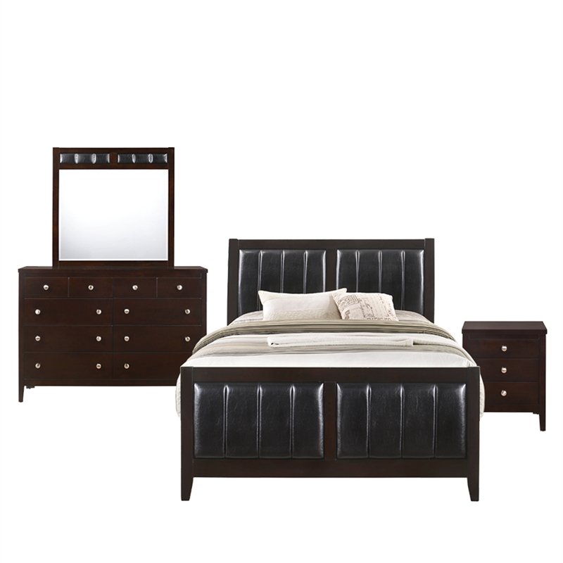 5 piece bedroom sets typically offer a bed, two dressers, and a mirror but always double check the specifications to be sure.