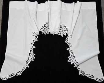These white swags have a border of battenburg lace. I also have the matching curtains. The valance (shown in between the swag pair) is sold separately. Find curtains starting from ₹415 onwards.