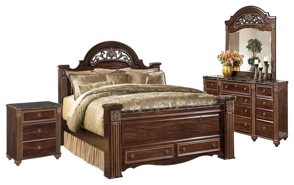 Bed available in queen or king. From classic to modern designs, bedroom furniture and poster bed sets run the gamut in styles and configurations, making it easy to find a four poster bedroom set that. Shop best king poster bedroom set at ny furniture outlets. With a replicated mahogany grain bathed in a deep red finish along with richly finished beaded, carved and rope details, this furniture.